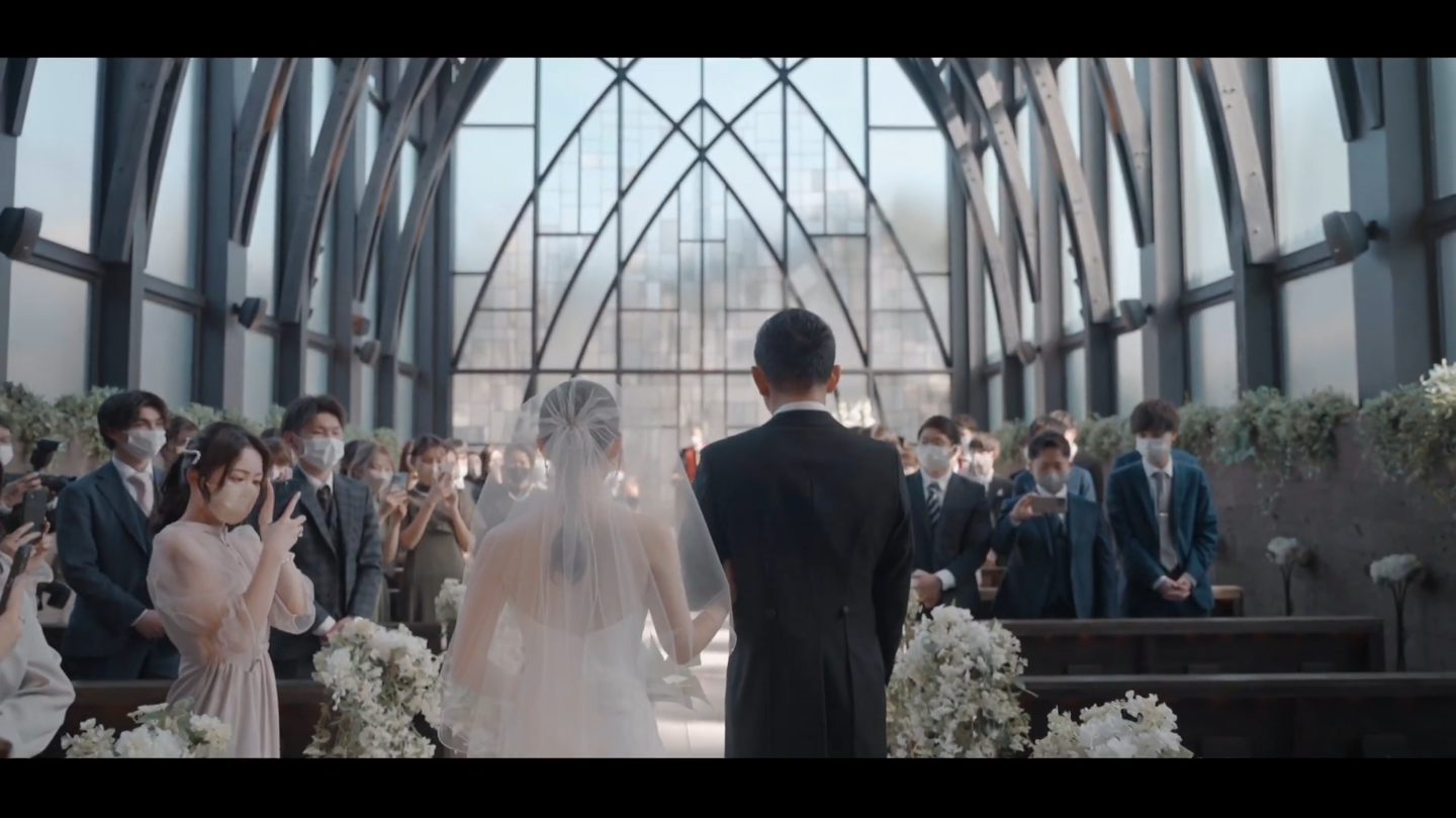 お二人の幸せなお気持ちや感謝の気持ちがより感動的にゲストのみなさまに伝わる、まさにお二人とゲストの想いをつなぐ映像です。